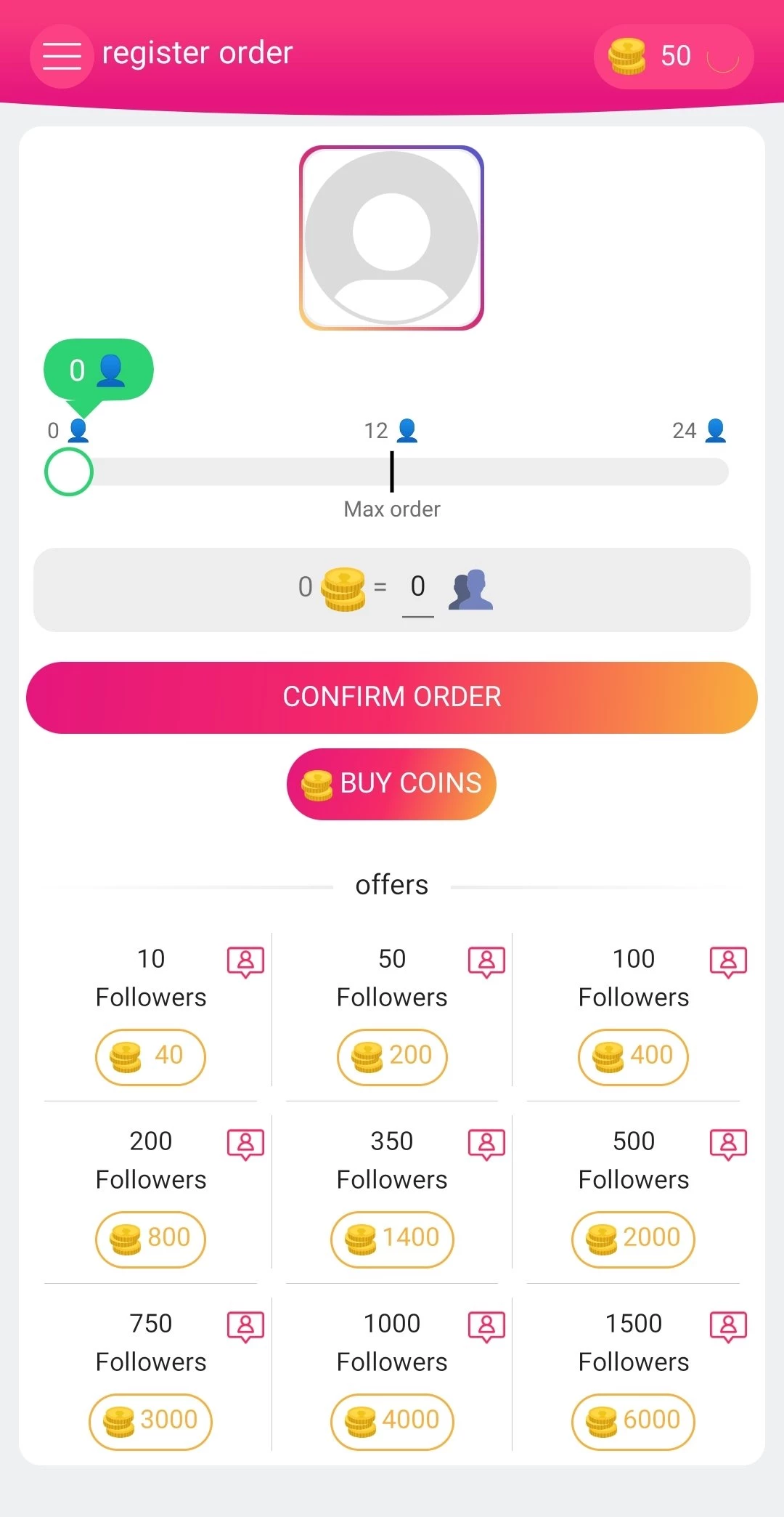 アプリのコインベースのシステムにより、さまざまなチャレンジに参加して解決し、代わりにコインを獲得できます。獲得したコインは、Instagram の投稿のフォロワー、コメント、いいねに簡単に変換できます。